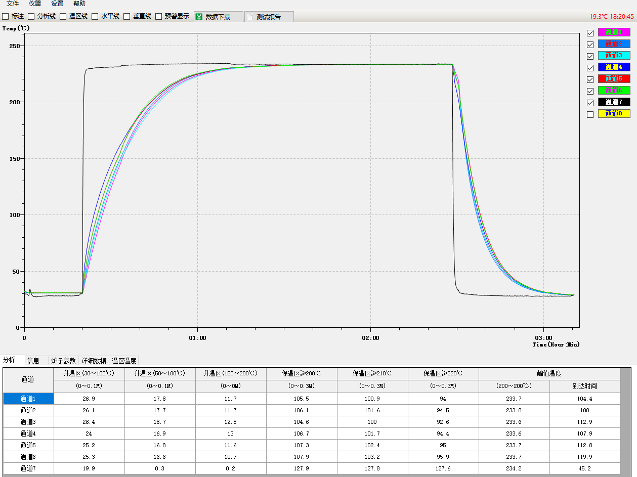12、曲線上可任意設(shè)定橫線標(biāo)注,更加直觀顯示某個(gè)溫度點(diǎn)的各個(gè)曲線時(shí)間狀 |